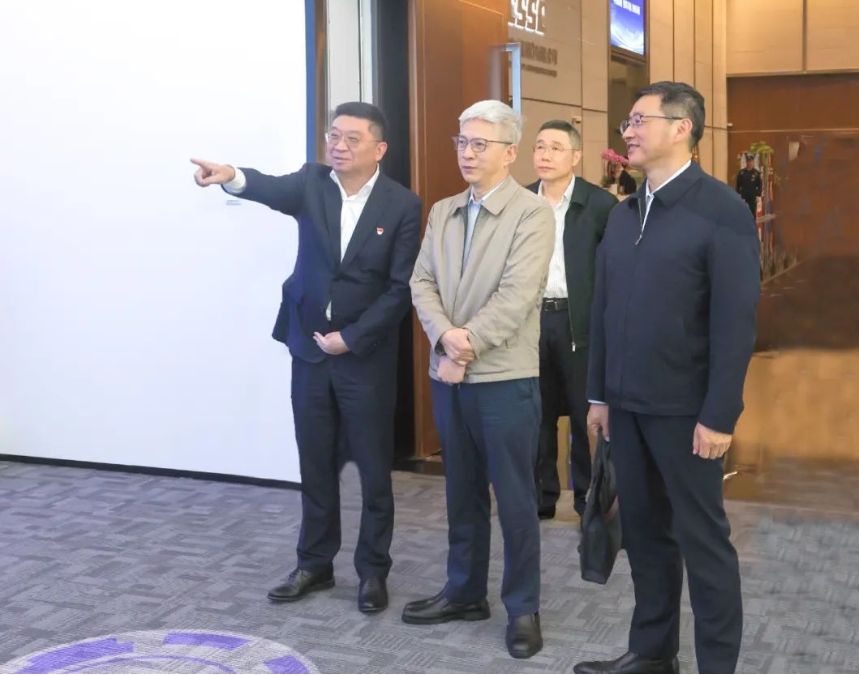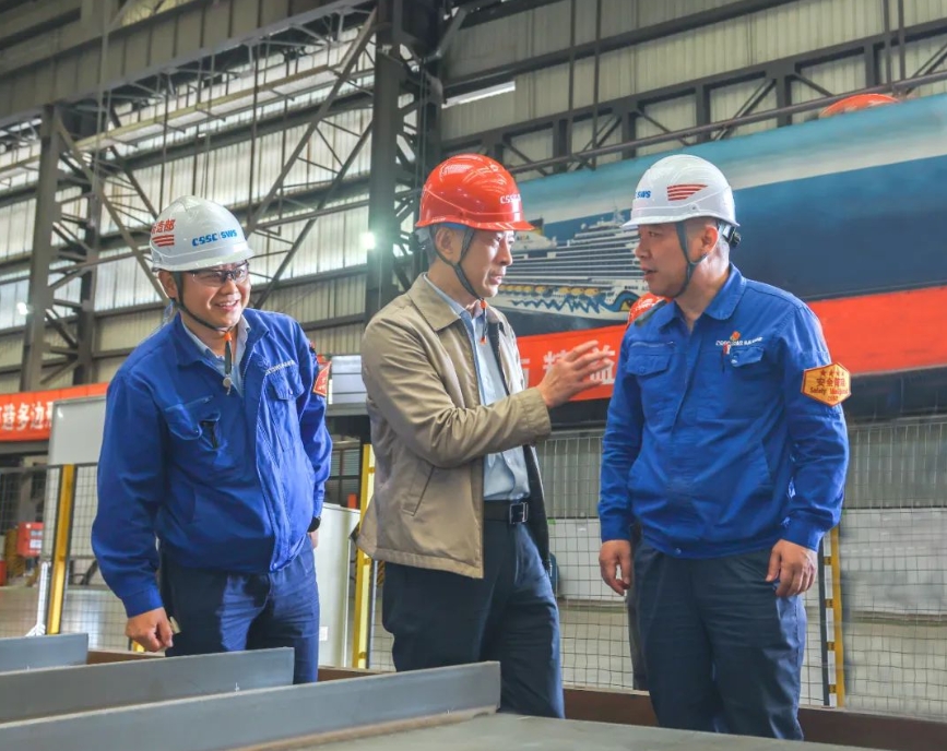 在相关二级管理单位,徐鹏调研了相关重点实验室、车间和在建的国产大型邮轮“爱达·花城号”,与一线职工深入交流,并听取了单位负责人关于经营生产、公司治理、深化改革、队伍建设、党的建设等方面情况汇报。