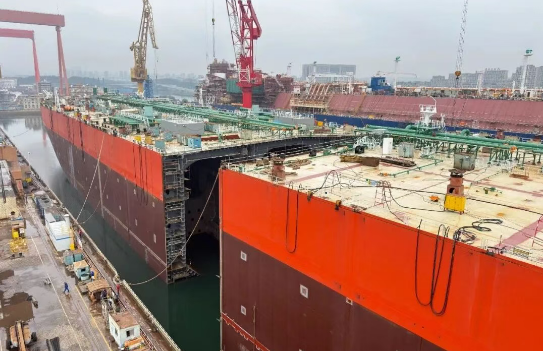 10月10日,大连造船为CIDO SHIPPING (H.K.) CO., LTD建造的30万吨VLCC130号船顺利完成艏半段出坞及两大段对接节点。此次作业较年度计划提前20天完成,有效压缩了施工周期,显著提升了作业效率。