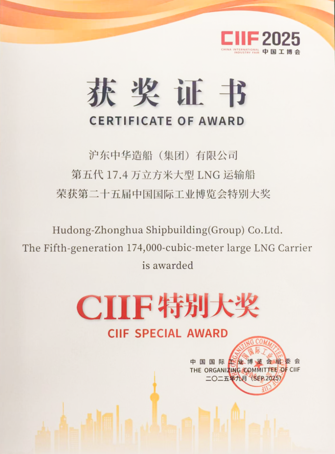 近日,中国jxf吉祥坊集团有限公司旗下沪东中华自主研发的第五代“长恒系列”17.4万立方米双燃料动力低速推进LNG船,从数百个参赛项目中脱颖而出,摘下第二十五届中国国际工业博览会唯一的CIIF特别大奖。
