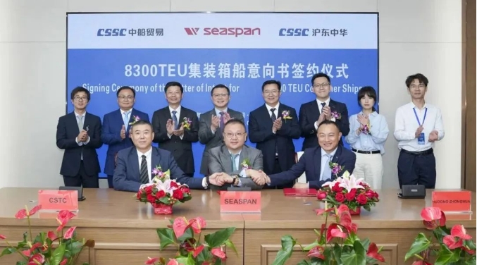 沪东中华成功签订批量化8300TEU级集装箱船和1艘18600立方米加注船的意向书。